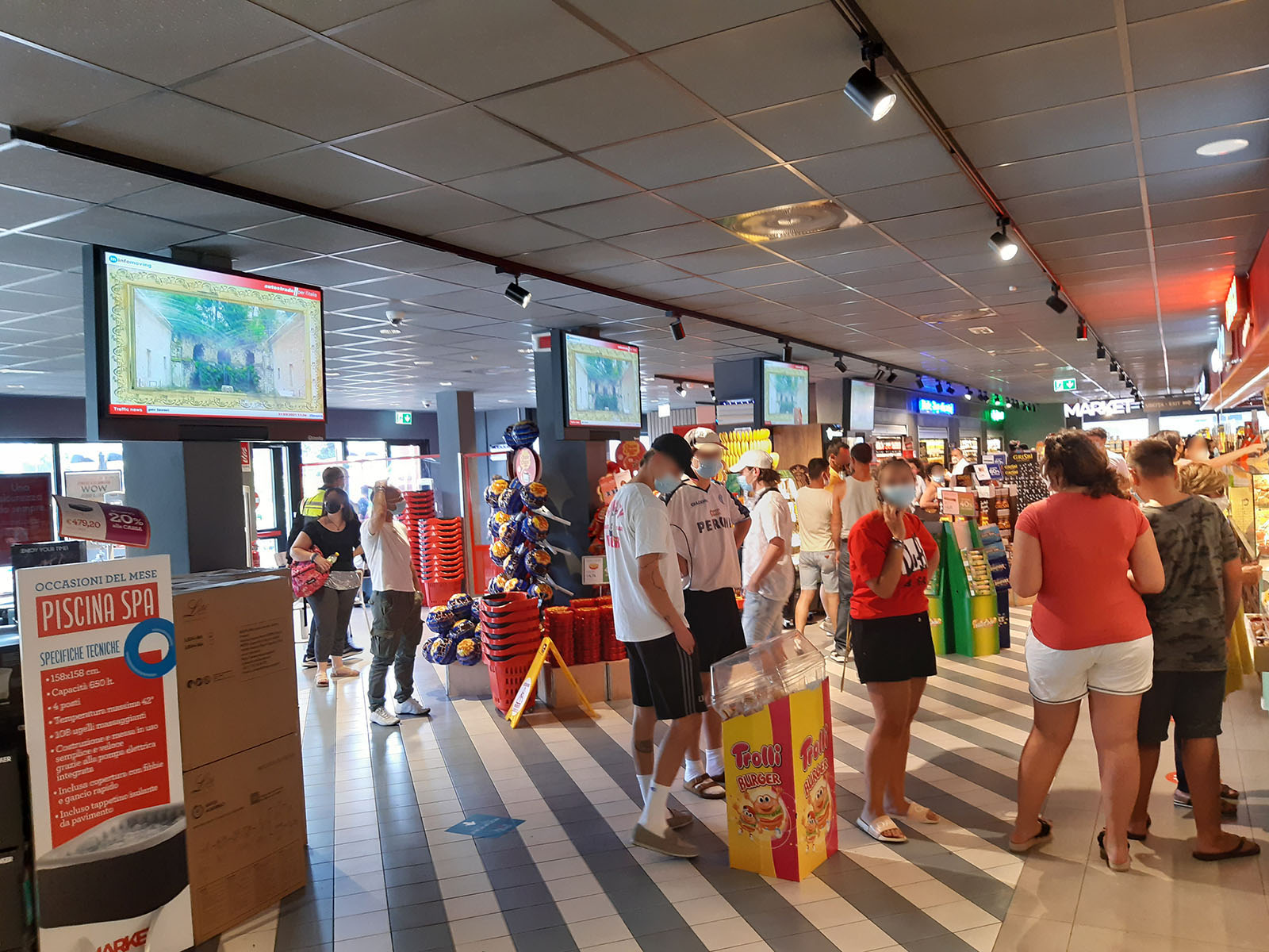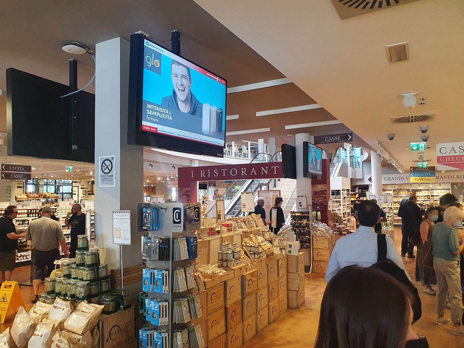 The systems are placed inside the shopping and restaurant areas of the main service areas. They are backlit with LED technology that guarantees a bright uniform light. A type of technology known as HD lenticular that allows the creation of dynamic and three-dimensional effects, may also be used.