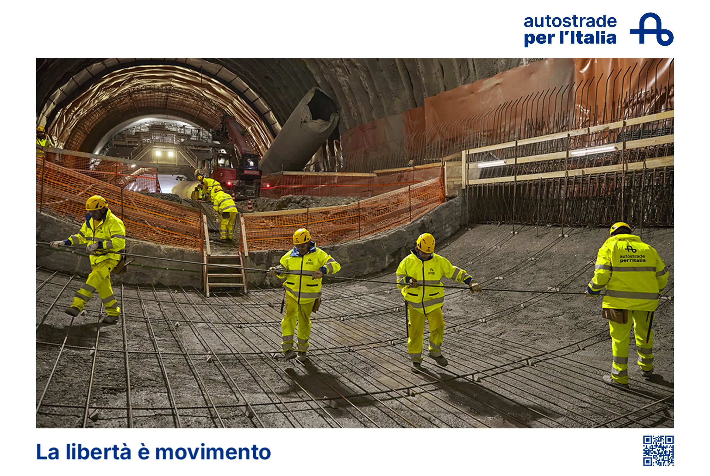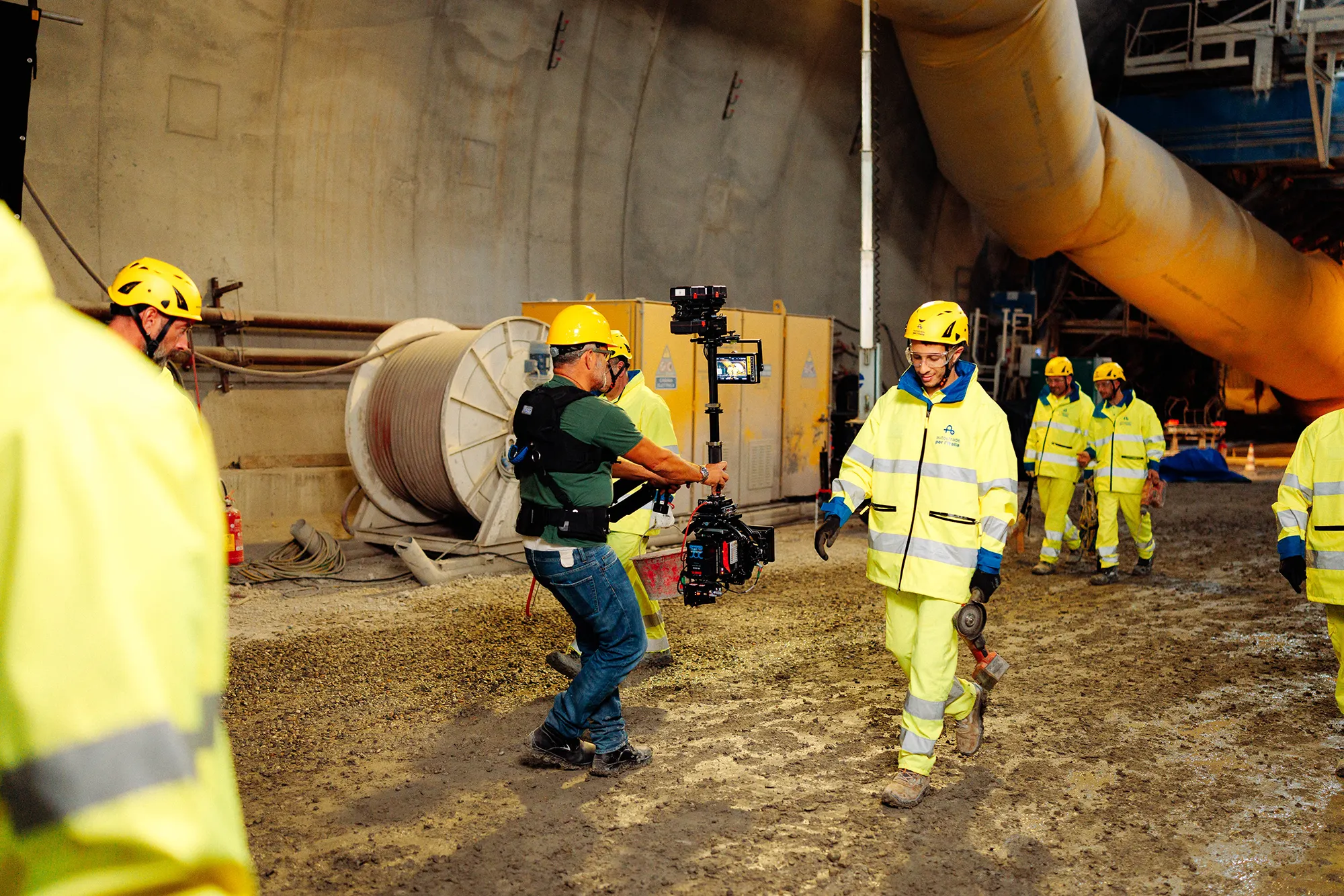 The campaign was shot along the Autostrada del Sole, in the Prenestina Ovest Service Station, in the A1 Panoramica and on the Tuscan section, in the new San Donato tunnel construction sites. The men and women working on our construction sites in the commercial are not actors: they are actual Tunnel construction workers.
