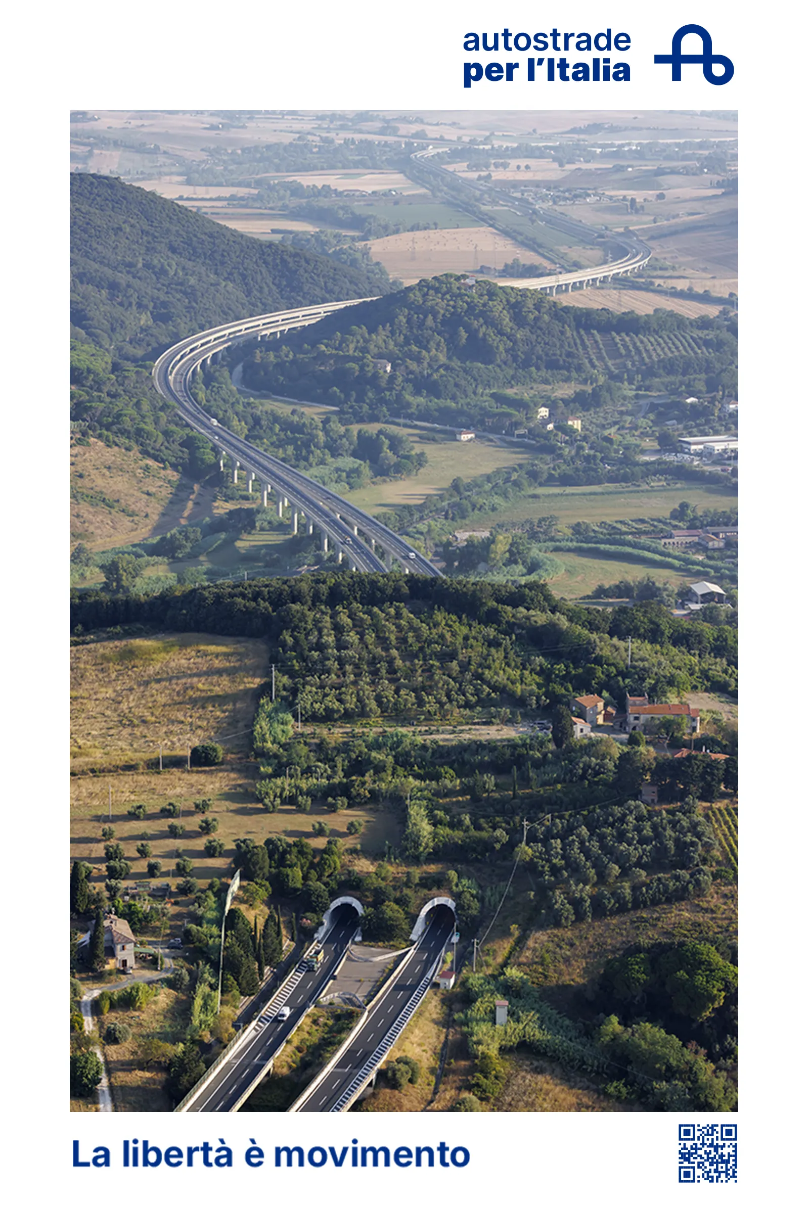 'Freedom is movement'. This is the claim of our institutional communication campaign, which celebrates motorways as a symbol of geographical connection and people’s freedom - the freedom to travel and choose our own path, according to our needs and time. The core element of the commercial, broadcast on the main national networks, is Giorgio Gaber's famous song, 'La Libertà', which bears a universal message of commitment and mutual relationship, becoming the ideal soundtrack to tell the story of the sustainable future of mobility.