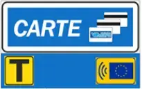 Blue uniquely indicates that payment can only be made using the following cards: Viacard, Credit Cards and Cash cards. There are two generic card types alongside the Viacard logo to indicate the various cards accepted (the details of the Cards accepted, illustrated below, can be found on the board placed at the start of the island delimiting the gate). Payment by Credit or Cash card is facilitated by the fact that there is no need to enter a Pin number and no commission is charged.