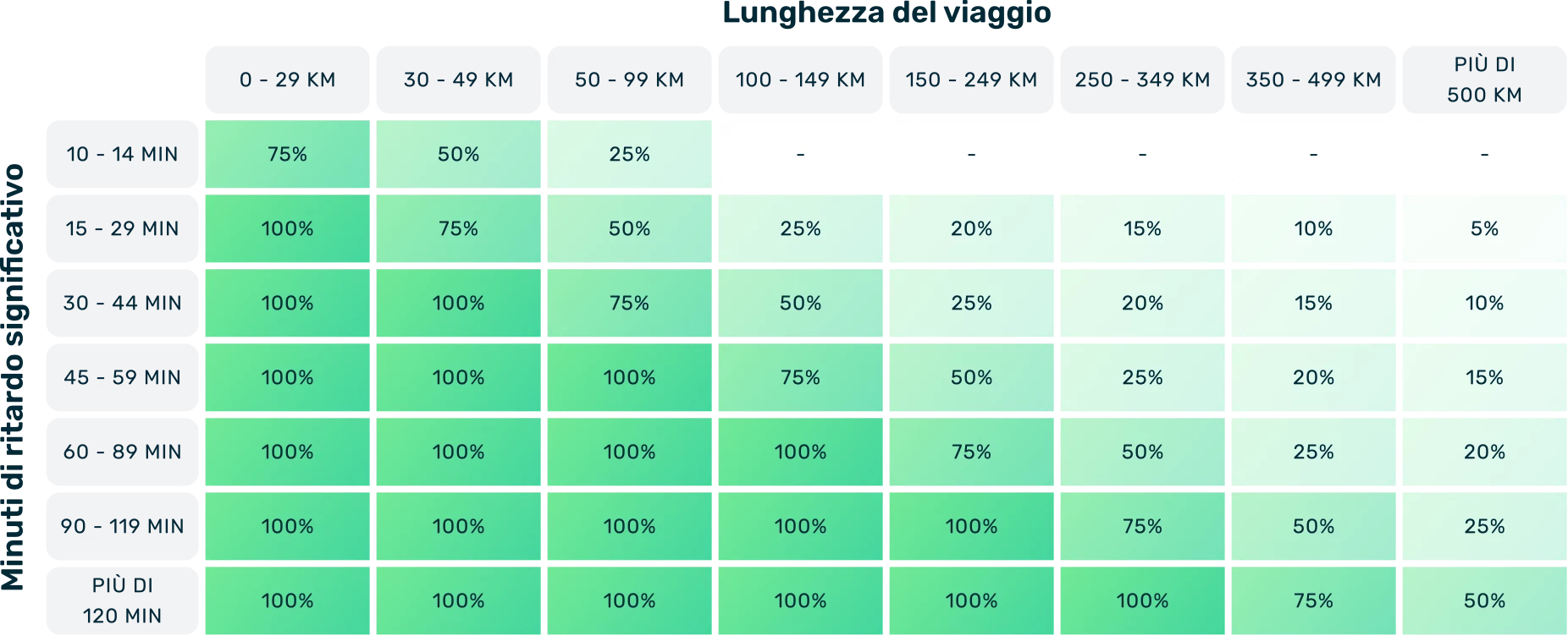 In the event of a significant delay of between 15 and 29 minutes, a refund equal to the amount of the delay will be granted: