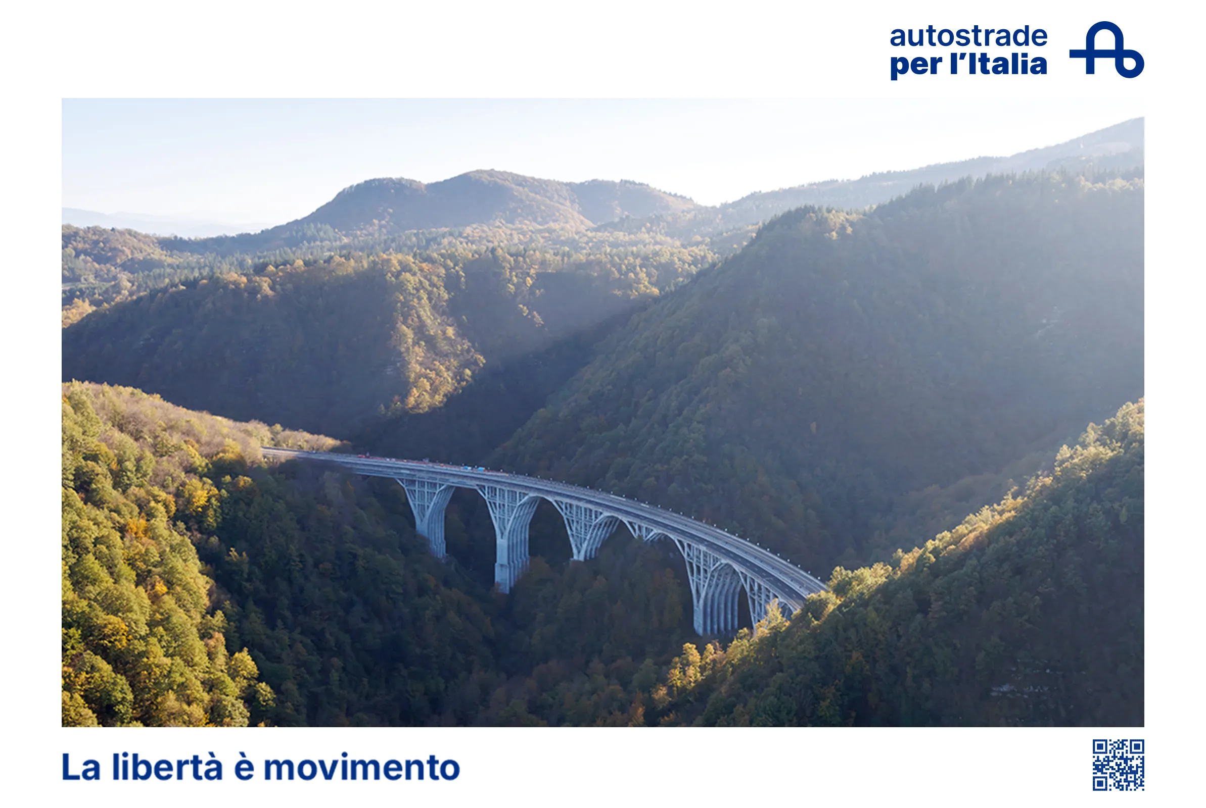 "La libertà è movimento”. È questo il claim della nostra campagna di comunicazione istituzionale, che punta a celebrare l’autostrada come simbolo di connessione di luoghi e libertà delle persone: libertà di viaggiare e di scegliere il percorso da fare, secondo le proprie esigenze e i propri tempi.